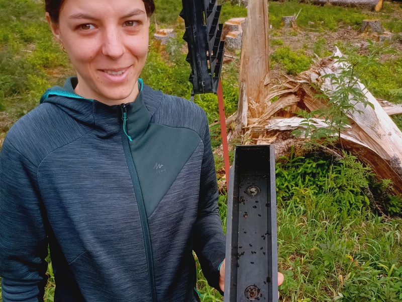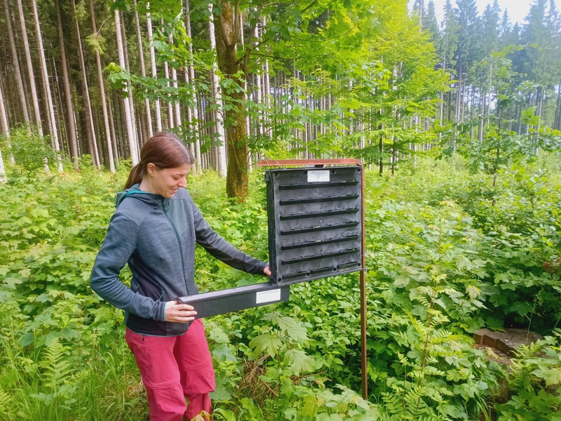 Na dalších devět týdnů se přesunula na LS Nová Pec, kde už se konkrétně věnovala tématu své práce. „S lesníky jezdí kontrolovat obranná opatření proti šíření kůrovce a seznamuje se s postupy používanými v konkrétních situacích. Vyhledává kůrovcem napadené stromy. V tomto období je vítanou pomocí,“ uvedla Růžena Heřmánková z divize Horní Planá. Kromě toho se zapojuje i do lesnických prací, např. zalesňování, do akcí lesní pedagogiky a poznává, jak čeští lesníci a lesní pedagogové komunikují s dětmi a veřejností. „Na rozdíl od Francie se v Čechách velmi dobře prezentuje práce lesníků směrem k dětem a veřejnosti v programech lesní pedagogiky, besedách a přednáškách,“ dodala Amálie Vautrin. A jaké má plány do budoucna? „Chtěla by se věnovat krajinářství nebo pracovat v národním parku a podílet se na vytváření naučných stezek,“ prozradila Amálie.