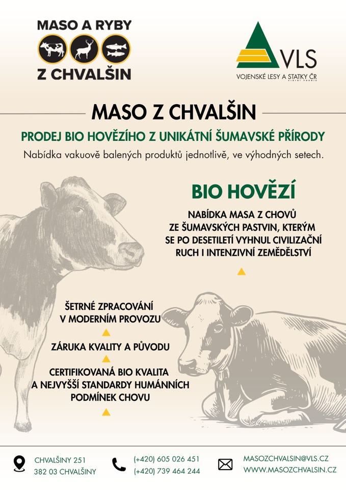 V bourárně Chvalšiny zpracováváme certifikované biohovězí masného plemene Simmentál z vlastních pastvin na Boleticku.